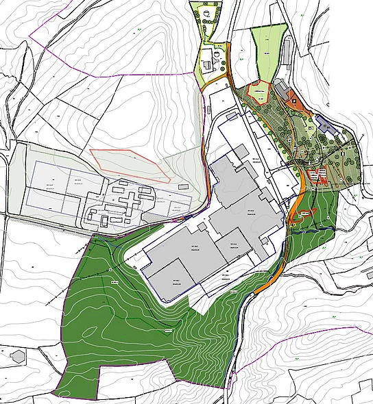 Die im Zuge der vorliegenden Planung herzustellenden Ausgleichsflächen liegen östlich der Werks-Kläranlagen in Hanglage unterhalb der Georg-Mayr-Straße und östlich des Parkplatzes an der TS 3. Die Lage der Ausgleichsflächen ergibt sich auch aus den beiliegenden Lageplänen.
